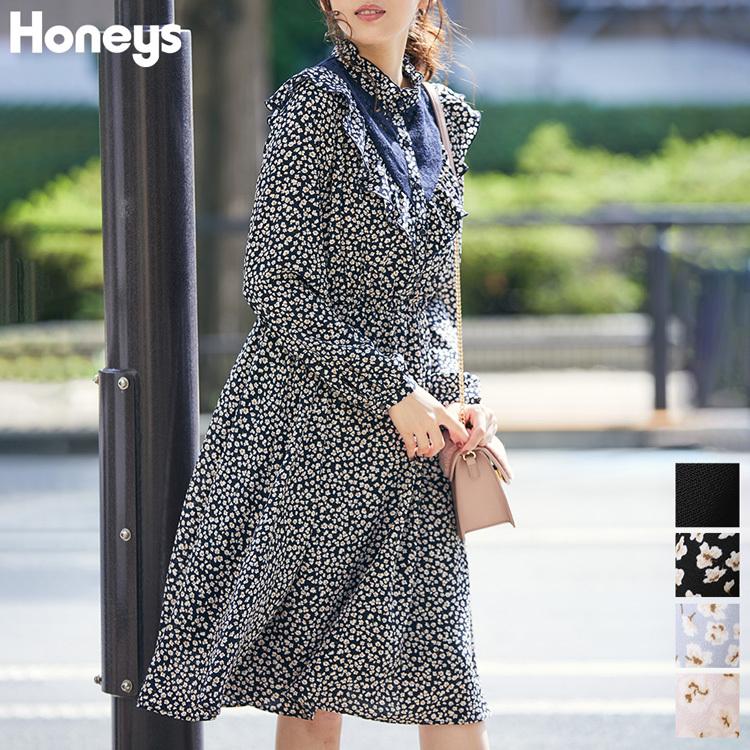 ワンピース 長袖 ひざ丈 フリル 花柄 無地 レディース 秋 冬 Honeys ハニーズ レース切替ワンピース Web限定llサイズ有 ハニーズ Paypayモール店 通販 Paypayモール